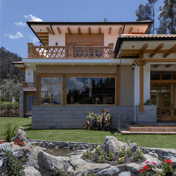 El estilo de la casa es ecléctico, basado en algunos lineamientos de la arquitectura tradicional cuencana, como las cubiertas de teja, los aleros largos con canecillos y la estructura de madera vista. Estos elementos se complementan con algunas formas y líneas rectas para darle un toque más contemporáneo a la residencia.