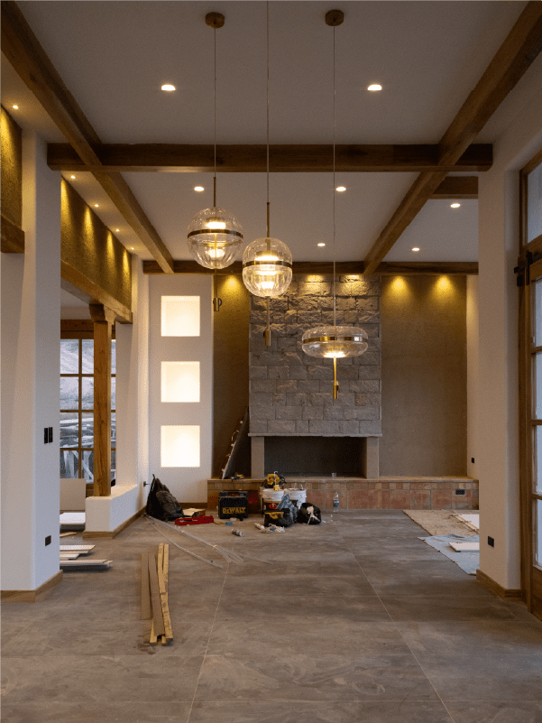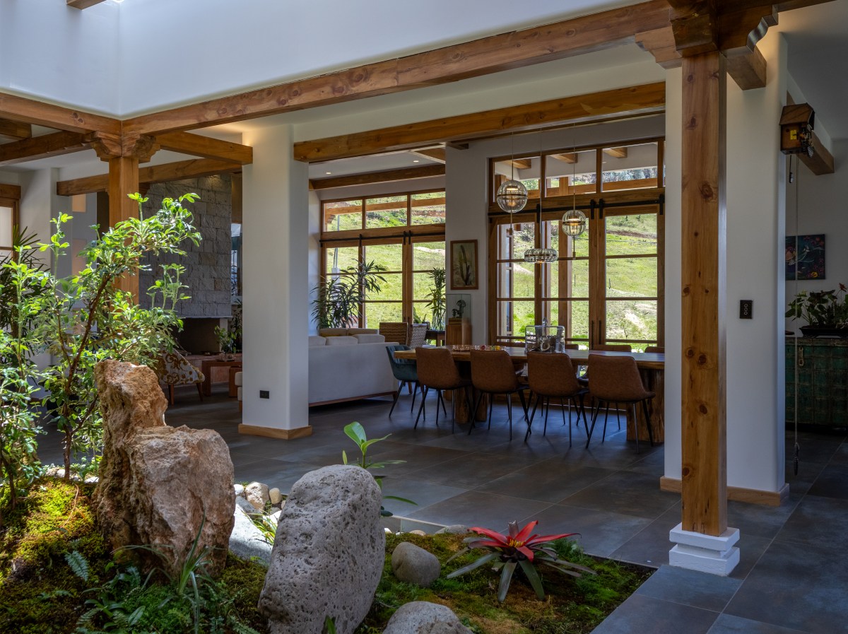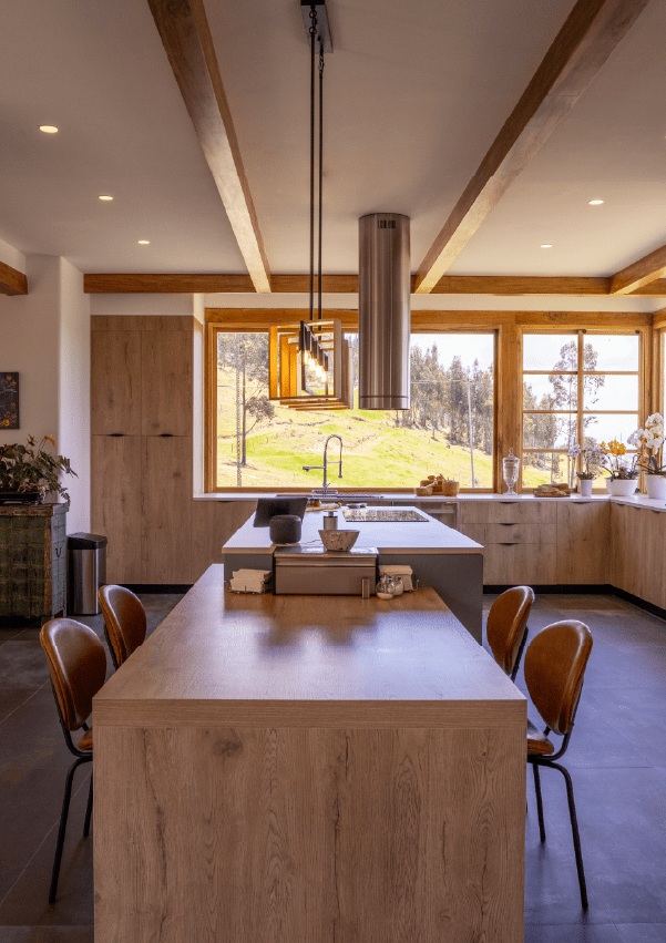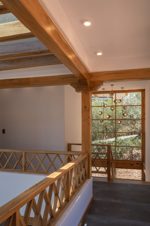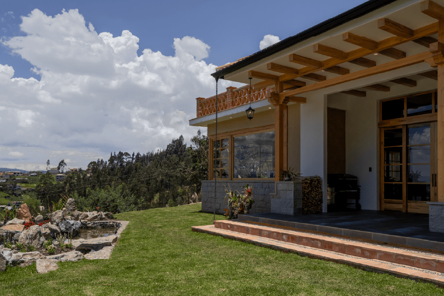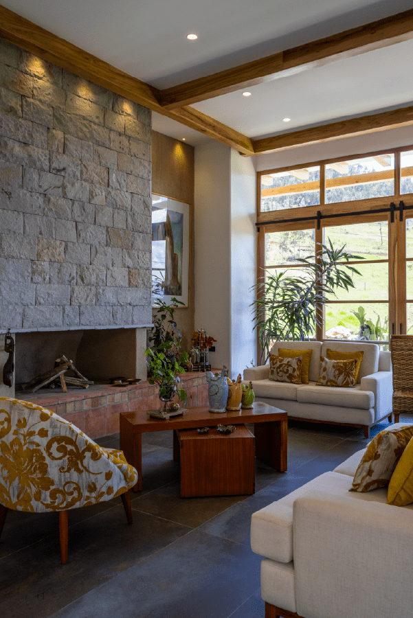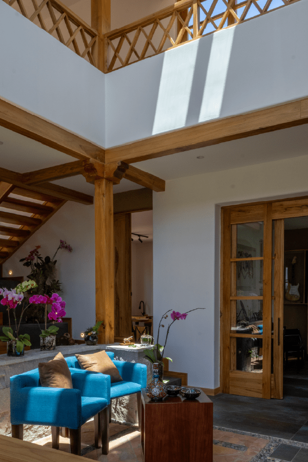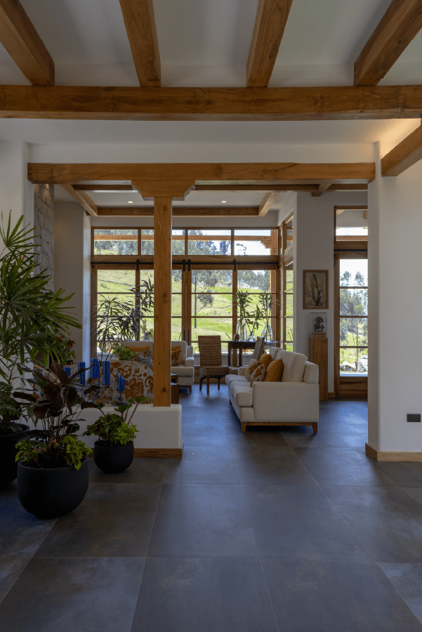 Como material principal se utiliza el tradicional pañete o barro, con cielos rasos blancos caracterizados por canecillos y vigas de madera para lograr una propuesta más armónica.