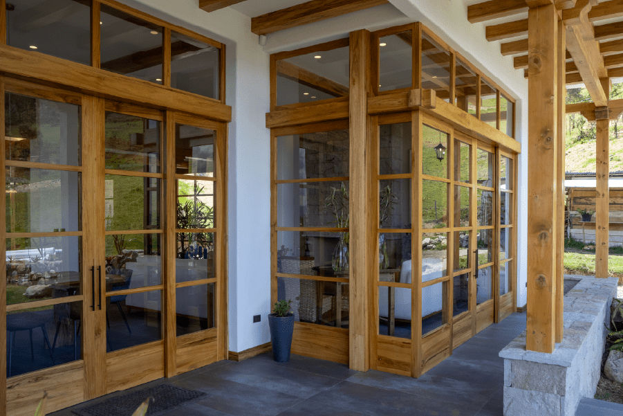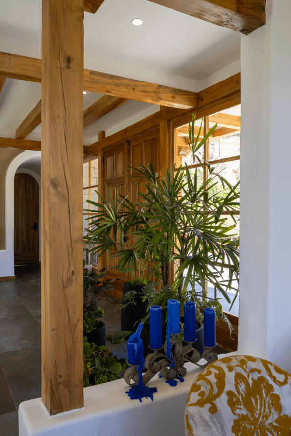 Todo el trabajo de carpintería, puertas y ventanas, está realizado en madera de seike al estilo tradicional. Otro elemento determinante son los pasamanos en las terrazas exteriores, realizados en ladrillo visto, generando una variedad de texturas y colores.